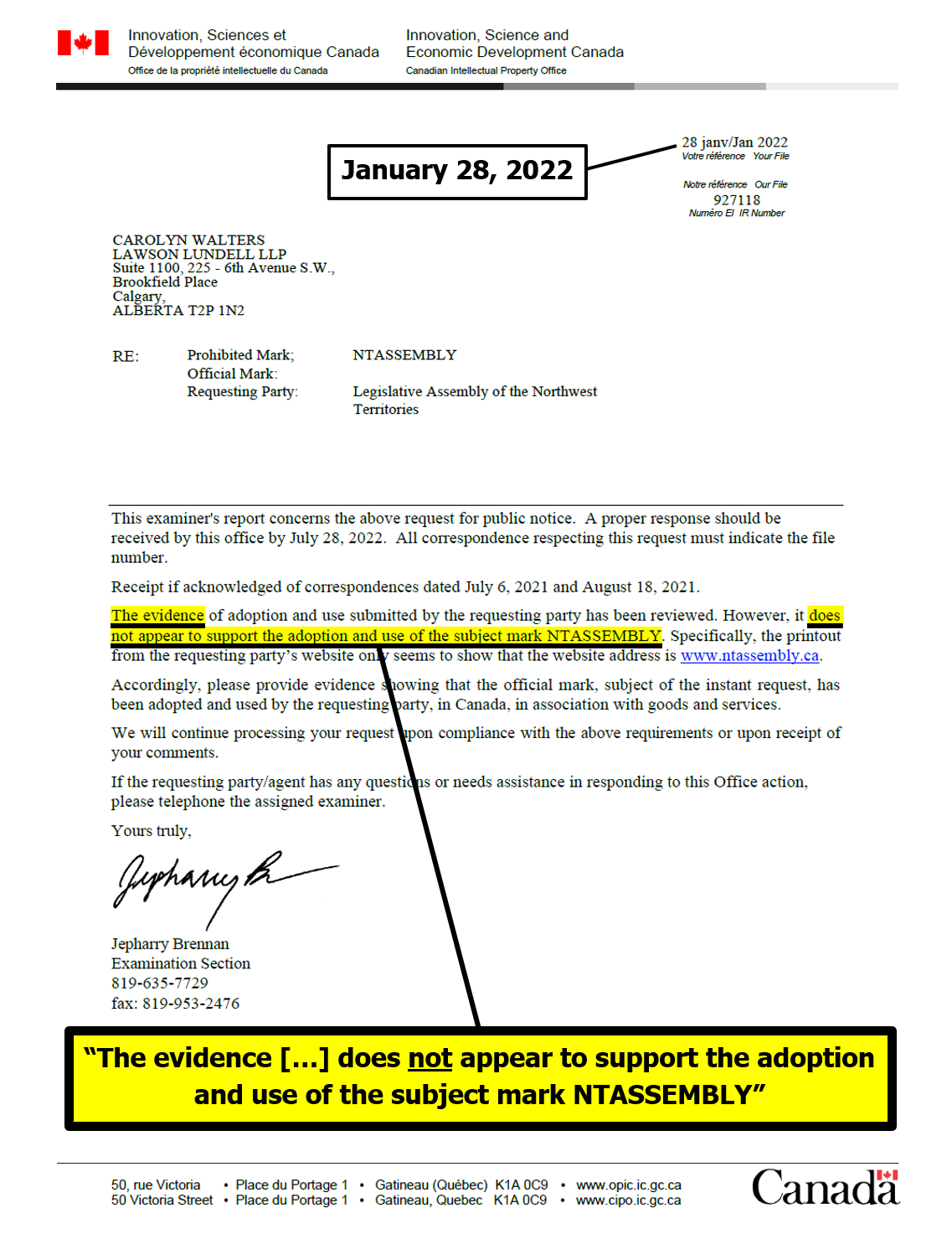 "evidence of adoption and use of NTASSEMBLY" is FALSE: